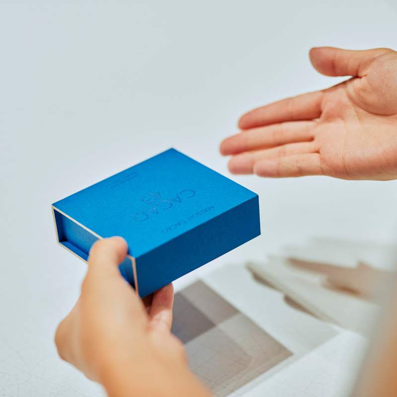 英語ではクラフツマンシップ。フランス語ではアルチザン。言語は違えど、「職人技」への敬意は世界共通。メゾンカカオも徹底して手仕事にこだわり、チョコレートの融解から、成形、焼成、製品の梱包に至るまで、すべての工程を人の手によっておこないます。チョコレートは微妙な温度変化にも敏感に反応するため、ショコラティエはその状態をつねに注視する。パッケージはお客様が最初に手にするものだから、心を込めて梱包する。細やかな心配りを積み重ねることでしかお客様にブランドのストーリーをお届けできない。わたしたちはそう信じているのです。